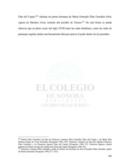 Díaz del Carpio. 260 Además era primo hermano de María Gertrudis Elías González Ortiz, esposa de Mariano Urrea, teniente del presidio de Tucson. 261 De esta forma se puede observar que en pleno ocaso del siglo XVIII tanto las redes familiares, como las redes de paisanaje seguían siendo una herramienta útil para ejercer el poder dentro de los presidios. 260 Simón Elías González era hijo de Francisco Antonio Elías González Díaz del Carpio y de María Rita Dolores Romo de Vivar Escalante (Pesqueira 1998, 107). Francisco Antonio era hijo del capitán Francisco Elías González y de Francisca Ignacia Díaz del Carpio (Pesqueira 1998, 97). Francisca Ignacia, abuela paterna de Simón era hija del capitán José Díaz del Carpio (Pesqueira 1998, 97). 261 Francisco Antonio Elías González, padre de Simón era hermano de José Fernando Elías González, padre de María Gertrudis (Pesqueira 1998, 97 y 107). 181