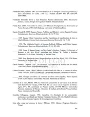 Fernández Pérez, Paloma. 1997. El rostro familiar de la metrópoli. Redes de parentesco y lazos mercantiles en Cadiz, 1700-1812. Madrid: SIGLO XXI DE ESPAÑA EDITORES. Fernández Sebastián, Javier y Juan Francisco Fuentes (directores). 2002. Diccionario político y social del siglo XIX español. Madrid: Alianza Editorial. Frank, Ross. 2000. From settler to citizen. New Mexican Development and the Creation of Vecino Society, 1750-1820. Berkeley: University of California Press. Garate, Donald T. 1993. Basques Names, Nobility, and Ethnicity on the Spanish Frontier. Colonial Latin American Historical Review II (1): 77-104. ______ 1995. Basque Ethnic Connections and the Expeditions of Juan Bautista de Anza to Alta California. Colonial Latin American Historical Review IV (1): 71-92. ______ 1996. The Vildósola Family: A Sonoran Political, Military, and Ethnic Legacy. Colonial Latin American Historical Review V (4): 413-440. ______ 1999. Anza: A Basque Legacy on New Spain’s Northern Frontier. En Portraits of Basques in the New World, compilado por Richard W. Etulain y Jerónima Echeverría, 31-56. Reno: University of Nevada Press. ______ 2003. Juan Bautista de Anza. Basque Explorer in the New World 1693-1740. Reno: University of Nevada Press. García Fuentes, Lutgardo. 1997. Los peruleros y el comercio de Sevilla con las Indias, 1580-1630. Sevilla: Universidad de Sevilla. Gómez Álvarez, Cristina. 2008. Comercio y comerciantes del libro en la carrera de indias: Cádiz-Veracruz, 1750-1778. México: Universidad Nacional Autónoma de México. ______ 2011. Navegar con libros. El comercio de libros entre España y Nueva España (1750-1820). México: Universidad Nacional Autónoma de México. González de la Vara, Martín. 1996. La Formación y desarrollo de los vascos en la élite del norte de la Nueva Vizcaya, 1740-1820. En Los vascos en las regiones de México siglos XVI a XX, coordinado por Amaya Garritz, 137-143. México: Universidad Nacional Autónoma de México, Ministerio de Cultura del Gobierno Vasco, Instituto Vasco-Mexicano de Desarrollo. González Echegaray, Joaquín. 1996. Cantabria. En Etnología de las comunidades autónomas, coordinado por Matilde Fernández Montes, 201-226. Madrid: Ediciones Doce Calles, Consejo Superior de Investigaciones Científicas. Gran atlas visual del cosmos, la tierra y México. 1993. México: Programa Educativo Visual. 201