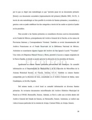 por la que se eligió esta metodología es que “permite pasar de un documento primario [bruto] a un documento secundario [representación del primero] (Bardin 2002, 34-35). A través de esta metodología se hizo posible la revisión de fuentes primarias y secundarias, y gracias a esto se pudo establecer las dos categorías a través de las cuales se ejercía el poder en los presidios. Para acceder a las fuentes primarias se consultaron diversos acervos documentales en la Ciudad de México, principalmente del Archivo General de la Nación, en los ramos de Provincias Internas y Correspondencia Virreinal. También se revisó documentación del Archivo Franciscano en el Fondo Reservado de la Biblioteca Nacional de México. Asimismo se examinaron algunos legajos del Archivo de San Ignacio Loyola “Vizcaínas”. Una visita a la Mapoteca Manuel Orozco y Berra, permitió el acceso a mapas originales de la Nueva España, en donde se puede apreciar la ubicación de los presidios de Sonora. Igualmente se citaron fuentes primarias provenientes del extranjero. Se consultó información en el Departamento de Manuscritos y en la Colección de Microfilms de la Arizona Historical Society, en Tucson, Arizona, E.U.A. También se citaron fuentes compartidas por la directora de tesis, consultadas en el Archivo General de Indias, ramo Guadalajara, en Sevilla, España. Del mismo modo, a nivel local se consultó información en diversas fuentes primarias. Se revisaron documentos microfilmados del Archivo Histórico Municipal de Parral en el INAH, Hermosillo, Sonora. Además, se llevó a cabo una revisión dentro del Archivo General del Estado de Sonora, en Hermosillo, Sonora. Asimismo, se realizó una visita al museo particular de la cronista de Arizpe, Carmen Pellat, en Arizpe, Sonora. 28