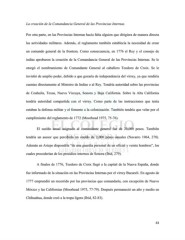 La creación de la Comandancia General de las Provincias Internas. Por otra parte, en las Provincias Internas hacía falta alguien que dirigiera de manera directa las actividades militares. Además, el reglamento también establecía la necesidad de crear un comando general de la frontera. Como consecuencia, en 1776 el Rey y el consejo de indias aprobaron la creación de la Comandancia General de las Provincias Internas. Se le otorgó el nombramiento de Comandante General al caballero Teodoro de Croix. Se le invistió de amplio poder, debido a que gozaría de independencia del virrey, ya que rendiría cuentas directamente al Ministro de Indias o al Rey. Tendría autoridad sobre las provincias de Coahuila, Texas, Nueva Vizcaya, Sonora y Baja California. Sobre la Alta California tendría autoridad compartida con el virrey. Como parte de las instrucciones que tenía estaban la defensa militar y el fomento a la colonización. También tendría que velar por el cumplimiento del reglamento de 1772 (Moorhead 1975, 75-76). El sueldo anual asignado al comandante general fue de 20,000 pesos. También tendría un asesor que percibiría un sueldo de 2,000 pesos anuales (Navarro 1964, 278). Además en Arizpe dispondría “de una guardia personal de un oficial y veinte hombres”, los cuales procederían de los presidios internos de Sonora (Ibid, 279). A finales de 1776, Teodoro de Croix llegó a la capital de la Nueva España, donde fue informado de la situación en las Provincias Internas por el virrey Bucareli. En agosto de 1777 emprendió un recorrido por las provincias que comandaría, con excepción de Nuevo México y las Californias (Moorhead 1975, 77-79). Después permaneció un año y medio en Chihuahua, donde creó a la tropa ligera (Ibid, 82-83). 63