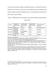 virrey, para que éste último otorgara el nombramiento interino y lo remitiera al Rey para su 35 aprobación. Por lo tanto, se advierte que la serie modificaciones en el procedimiento para nombrar capitanes de presidio posiblemente fuera un intento fallido para transformar las formas en que se ejercía el poder. Cuadro 2.- Modificaciones en el procedimiento para nombrar capitanes de presidio durante el siglo XVIII Propuesta de Nombramiento Nombramiento Período Sueldo durante el candidato hecha interino hecho definitivo hecho interinato por: por: por: 1729-1773 El gobernador El virrey El Rey Dos terceras partes El inspector 1773-1776 El virrey El Rey Completo comandante El inspector El comandante 1776-1784 El Rey Completo comandante general El comandante 1784-1792 El virrey El Rey Completo general Elaboración propia en base a: Borrero Silva, María del Valle. 2000. Fundación y Primeros Tiempos de la Gobernación de Sonora y Sinaloa 1732-1768. Tesis de doctorado en Historia, Universidad de Sevilla. Pags. 108-111; Rivera, Pedro. 1945. Diario y derrotero de lo visto caminado, visto y observado en la visita que hizo a los Presidios de la Nueva España Septentrional el Brigadier Pedro de Rivera. México: SEDENA. Pag. 202; Velázquez, María del Carmen. 1982. La frontera norte y la experiencia colonial. México: Secretaría de Relaciones Exteriores. Pags. 103 y 131; Moorhead, Max. 1975. The presidio. Bastion of the spanish borderlands. Norman: University of Oklahoma Press. Pags. 75 y 76; Navarro García, Luis. 1964. Don José de Gálvez y la comandancia general de las provincias internas del norte de la Nueva España. Sevilla: Escuela de Estudios Hispano-Americanos de Sevilla. Pags. 429 y 430; y Propuesta para capitán del presidio de Fronteras. Elaborada por el comandante general Jacobo de Ugarte y Loyola, y dirigida al virrey Manuel Antonio Flórez. Chihuahua, 15 de mayo de 1789. AGN. Provincias Internas, vol. 83, folio 165. 35 Propuesta para capitán del presidio de Fronteras. Elaborada por el comandante general Jacobo de Ugarte y Loyola, y dirigida al virrey Manuel Antonio Flórez. Chihuahua, 15 de mayo de 1789. AGN. Provincias Internas, vol. 83, folio 165. 67