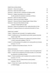 ÍNDICE DE ILUSTRACIONES. Ilustración 1.- Retrato de los apaches. 36 Ilustración 2.- Retrato del soldado de cuera. 47 Ilustración 3.- Chaleco de cuero y armamento del soldado presidial. 48 Ilustración 4.- Imágenes representativas de las cofradías de ambos partidos del consulado de comerciantes de México. 82 Ilustración 5.- Retrato de Ambrosio de Meave. 94 Ilustración 6.- Retrato de José González Calderón. 95 Ilustración 7.- Retratos de Francisco Fagoaga Irragori y Manuel Aldaco. 102 Ilustración 8.- Retratos de Pedro Sánchez de Tagle y Francisco Antonio Sánchez de Tagle. 102 Ilustración 9.- Retrato de Juan Bautista de Anza, capitán del presidio de Tubac. 107 Ilustración 10.- Imágenes del proceso de construcción del presidio de Tucson. 165 ÍNDICE DE CUADROS. Cuadro 1.- Diferencias entre los presidios y las compañías auxiliares. 54 Cuadro 2.- Modificaciones en el procedimiento para nombrar capitanes de presidio durante el siglo XVIII. 67 Cuadro 3.- Relación entre el paisanaje de los capitanes de los presidios de Sonora y el de los comerciantes capitalinos, 1764-1767. 96 Cuadro 4.- La red de paisanaje de los capitanes en los cuatro presidios de la frontera de Sonora, 1771-1774. 143 Cuadro 5.- Capitanes de los presidios de Sonora, 1785-1787. 173 ÍNDICE DE FIGURAS. Figura 1.- El vínculo entre el comercio y el paisanaje a través de las organizaciones. 84 Figura 2.- Vínculos entre los propietarios de los bancos de plata y los comerciantes que abastecían a los presidios de Sonora. 101 Figura 3.- Vínculo de parentesco entre los capitanes de los presidios de la frontera de Sonora, 1771-1774. 144 Figura 4.- La red de vascos en el abastecimiento de cuatro presidios sonorenses, 1784-1789. 155 Figura 5.- Vínculo entre el capitán Andrés Manuel José Arias Caballero y la familia Fagoaga. 172 6