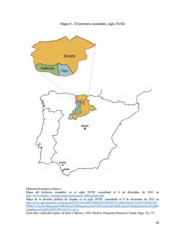 Mapa 9.- El territorio montañés, siglo XVIII Elaboración propia en base a: Mapa del territorio montañés en el siglo XVIII, consultado el 8 de diciembre de 2013 en http://www.luisfer1.com/descargas/montaneses_bibliografia.pdf; Mapa de la división política de España en el siglo XVIII, consultado el 8 de diciembre de 2013 en http://www.adevaherranz.es/Geografia/ESPANA/RECURSOS%20FISICA%20HUMANA%20Y%20ECON OMICA/Geo%20Humana%20Politica%20Organizacion%20Territorial%20Division%20administrativa%20Fl oridablanca%20S%20XVIII%201822.gif; y Gran atlas visual del cosmos, la tierra y México. 1993. México: Programa Educativo Visual. Pags. 76 y 77. 76