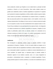 menos producción; mientras que Empalme era una ciudad donde su principal actividad económica se fincaba en el sector ferrocarrilero. Ahora ambas ciudades cuentan con grandes naves industriales, donde se localizan maquiladoras de exportación. Se esperaría que la presencia de empresas maquiladoras en dichas ciudades, además de generar empleo, creara vínculos de proveeduría o subcontratación con empresas locales y/o regionales, y diera una proyección positiva de las empresas locales a nivel mundial a través de estas empresas transnacionales. Sin embargo, tal como ocurre en el contexto nacional esta región no es la excepción en cuanto al casi nulo encadenamiento de las empresas locales a la IME. Es por ello que estudiamos la escasa participación de las empresas locales en la integración a la cadena de producción de la industria maquiladora en Guaymas y Empalme. En este sentido, la problemática anterior debe ser analizada, además de la articulación de las relaciones económicas al interior de la región y los cambios experimentados a través del tiempo y de qué manera han afectado estos cambios a la región. Justificación Esta investigación es importante, primero, porque se pretende contribuir al mejor conocimiento de Guaymas y Empalme. Al inicio de nuestro trabajo nos topamos con la ausencia de estudios sobre las maquiladoras localizadas en dichos municipios. Además de que es aleccionador estudiar la experiencia en ciudades de reciente industrialización en el sector secundario. En segundo lugar, es importante porque se pretende estudiar la dimensión regional de una tendencia conocida, como es la escasa integración de proveedores y subcontratistas locales y regionales a la industria maquiladora. Tercero, porque permitirá exponer los sectores económicos y las ramas de la manufactura en que se 12