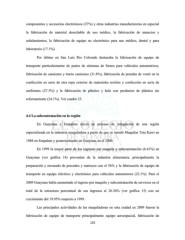 componentes y accesorios electrónicos (37%) y otras industrias manufactureras en especial la fabricación de material desechable de uso médico, la fabricación de anuncios y señalamientos, la fabricación de equipo no electrónico para uso médico, dental y para laboratorio (17.1%). Por último en San Luis Rio Colorado destacaba la fabricación de equipo de transporte particularmente de partes de sistemas de frenos para vehículos automotrices, fabricación de camiones y tracto camiones (31.8%), fabricación de prendas de vestir en la confección en serie de otra ropa exterior de materiales textiles y confección en serie de uniformes (27.3%) y la fabricación de plástico y hule con productos de plástico sin reforzamiento (24.1%). Ver cuadro 23. 4.4 La subcontratación en la región En Guaymas y Empalme inició un proceso de integración de una región especializada en la industria maquiladora a partir de que se instaló Maquilas Teta Kawi en 1988 en Empalme y posteriormente en Guaymas en el 2000. En 1999 la mayor parte de los ingresos por maquila y subcontratación (6.41%) en Guaymas (ver gráfica 14) provenían de la industria alimentaria, principalmente la preparación y envasado de pescados y mariscos con el 56% y la fabricación de equipo de transporte en equipo eléctrico y electrónico para vehículos automotores (22.1%). Para el 2009 Guaymas había aumentado el ingreso por maquila y subcontratación de servicios en el total de la estructura porcentual de sus ingresos al 26.36% (ver gráfica 15) con un crecimiento del 19.95% respecto a 1999. Las principales actividades de las maquiladoras en esta ciudad en 2009 fueron la fabricación de equipo de transporte principalmente equipo aeroespacial, fabricación de 125