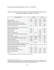 21 única rama que subcontrataba maquila o servicios. Ver cuadro 24. Cuadro 24. Porcentaje de gastos por maquila y subcontratación por rama manufacturera en los municipios de Guaymas y Empalme, 1999 y 2009 Rama manufacturera Empalme Guaymas 1999 2009 1999 2009 Industria alimentaria 0.00% 0.00% 82.12% 82.09% Industria de las bebidas y del tabaco 0.00% 0.00% 0.00% 0.00% Fabricación de insumos textiles y acabado de textiles - 0.00% 0.00% - Fabricación de productos textiles, excepto prendas de vestir - 0.00% 0.00% 0.00% Fabricación de prendas de vestir 0.00% 0.00% 0.00% 0.00% Curtido y acabado de cuero y piel, y fabricación de productos de cuero, piel y materiales sucedáneos 0.00% - - 0.00% Industria de la madera 0.00% - 0.00% 0.00% Industria del papel 0.00% - 0.00% 10.07% Impresión e industrias conexas 0.00% 0.02% 0.00% 0.00% Fabricación de productos derivados del petróleo y del carbón - - 0.00% - Industria química - - 0.00% 0.00% Industria del plástico y del hule 0.00% 99.98% 0.00% 0.00% Fabricación de productos a base de minerales no metálicos 100% 0.00% 0.00% 0.00% Industrias metálicas básicas 0.00% 0.00% 0.17% 0.00% Fabricación de productos metálicos 0.00% - 0.21% 4.48% Fabricación de maquinaria y equipo - 0.00% - 0.00% Fabricación de equipo de computación, comunicación, medición y de otros equipos, componentes y accesorios electrónicos 0.00% 0.00% 0.00% 0.00% Fabricación de accesorios, aparatos eléctricos y equipo de generación de energía eléctrica 0.00% 0.00% - - Fabricación de equipo de transporte 0.00% 0.00% 17.45% 0.00% Fabricación de muebles, colchones y persianas 0.00% 0.00% 0.06% 3.36% Otras industrias manufactureras 0.00% 0.00% 0.00% 0.00% Total 100% 100% 100% 100% Fuente: Elaboración propia, con base en los Censos Económicos, INEGI (1999 y 2009). 21 Para determinar el porcentaje de los gastos por maquila y subcontratación de servicios tanto en Guaymas como en Empalme se tomo la variable de gastos por servicios de maquila y subcontratación de los censos económicos del INEGI (1999 y 2009) dividiendo a las ramas entre el total y así obtener el resultado correspondiente. 127