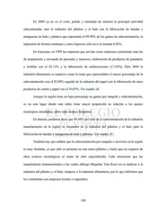 En 2009 ya no es el corte, pulido y laminado de mármol la principal actividad subcontratada, sino la industria del plástico y el hule con la fabricación de bandas y mangueras de hule y plástico que representó el 99.98% de los gastos de subcontratación, la impresión de formas continuas y otros impresos sólo tuvo el restante 0.02%. En Guaymas, en 1999 las empresas que servían como empresas contratistas eran las de preparación y envasado de pescados y mariscos, elaboración de productos de panadería y tortillas con el 82.12% y la fabricación de embarcaciones (17.45%). Para 2009 la industria alimentaria se mantuvo como la rama que representaba el mayor porcentaje de la subcontratación con el 82.09% seguido de la industria del papel con la fabricación de otros productos de cartón y papel con el 10.07%. Ver cuadro 24. Aunque la región tiene un bajo porcentaje en gastos por maquila y subcontratación, es en este lugar donde este rubro tiene mayor proporción en relación a los quince municipios estudiados, sobre todo destaca Empalme. En síntesis, podemos decir que 98.48% del total de la subcontratación de la industria manufacturera en la región se encuentra en la industria del plástico y el hule para la fabricación de bandas y mangueras de hule y plástico. Ver cuadro 25. También hay que señalar que la subcontratación por maquila o servicios en la región es muy limitada, ya que sólo se presenta en una rama (plástico y hule) que no requiere de altos avances tecnológicos ni mano de obra especializada. Cabe mencionar que las maquiladoras transnacionales a las cuales alberga Maquilas Teta Kawi no se dedican a la industria del plástico y el hule, tampoco a la industria alimentaria, por lo que inferimos que los contratistas son empresas locales o regionales. 128