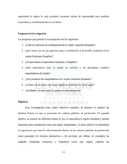 especializa la región lo cual permitirá encontrar nichos de oportunidad para posibles inversiones y encadenamientos en un futuro. Preguntas de investigación Las preguntas que guiarán la investigación son las siguientes: 1. ¿Cuál es el proceso de configuración de la región Guaymas-Empalme? 2. ¿Qué ramas son las que generan mayor contribución al desarrollo económico de la región Guaymas-Empalme? 3. ¿En qué ramas se especializa Guaymas y Empalme? 4. ¿Qué importancia tiene la región en relación a las principales ciudades maquiladoras del estado? 5. ¿Qué producen las maquiladoras en la región Guaymas-Empalme? 6. ¿Cuáles son las ramas con mayor grado de tecnificación en la región? 7. ¿En dónde y en qué ramas se genera la subcontratación? Objetivos Esta investigación tiene cuatro objetivos centrales. El primero es analizar las distintas formas en que se presentan las cadenas globales de producción. El segundo objetivo es conocer las diferentes ramas en que se especializa la región estudiada y aportar elementos para considerarla como una región maquiladora; el tercer objetivo es determinar la importancia que tiene la subcontratación dentro de las cadenas globales de producción como generador de vínculos productivos o de servicios; por último, al considerar las ciudades estudiadas (Guaymas y Empalme) como una región, explorar las 13