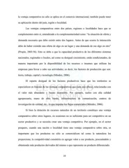 la ventaja comparativa no sólo se aplica en el comercio internacional, también puede tener su aplicación dentro del país, región o localidad. Las ventajas comparativas entre dos países, regiones o localidades hace que se complementen entre sí, entendiendo a la complementariedad como: “la situación de oferta y demanda necesaria que debe existir entre dos lugares. Antes de que ocurra la interacción debe de haber existido una oferta de algo en un lugar y una demanda de ese algo en otro” (Propin, 2003:56). Esto se debe a que la capacidad productiva de los diferentes sistemas nacionales, regionales o locales, así como su desigual crecimiento, están condicionados, de manera importante por la disponibilidad de los recursos o insumos que utilizan las empresas para llevar a cabo sus actividades; es decir, los factores de producción que son: tierra, trabajo, capital y tecnología (Méndez, 2006). El reparto desigual de los factores productivos hace que los territorios se especialicen en función de las ventajas comparativas que cada uno ofrece, relacionadas con el valor más abundante y barato disponible. Por ejemplo, suelos con alta calidad agropecuaria, mano de obra barata, infraestructura de comunicación, centros de investigación de calidad, etc., lo que impulsa los flujos comerciales (Méndez, 2006). Si bien la dotación de recursos naturales de un territorio constituye una ventaja comparativa sobre otros lugares, en ocasiones no es suficiente para ser competitivo en un sector productivo y se necesita crear una ventaja competitiva. Por ejemplo, en el sector pesquero, cuando una nación o localidad tiene una ventaja comparativa sobre otra, es importante que los productos no sólo se comercialicen tal como la naturaleza los proporciona; la competitividad consistiría en agregar valor a ese producto, procesándolo y obteniendo más productos derivados del mismo o que represente un producto diferenciado. 19