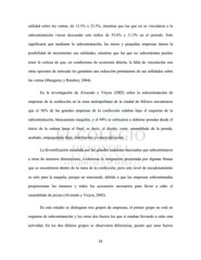 utilidad sobre las ventas, de 12.5% a 23.5%, mientras que las que no se vincularon a la subcontratación vieron descender este índice de 35.6% a 11.5% en el periodo. Esto significaría que mediante la subcontratación, las micro y pequeñas empresas tienen la posibilidad de incrementar sus utilidades, mientras que las que no subcontratan pueden tener la certeza de que, en condiciones de economía abierta, la falta de vinculación con otras opciones de mercado les garantiza una reducción permanente de sus utilidades sobre las ventas (Mungaray y Ramírez, 2004). En la investigación de Alvarado y Vieyra (2002) sobre la subcontratación de empresas de la confección en la zona metropolitana de la ciudad de México encontraron que el 56% de las grandes empresas de la confección estaban bajo el esquema de la subcontratación, básicamente maquilar, y el 44% se enfocaron a elaborar prendas desde el inicio de la cadena hasta el final; es decir, el diseño, corte, ensamblado de la prenda, acabado, empaquetado final, distribución y comercialización. La diversificación mostrada por las grandes empresas nacionales que subcontrataron a otras de menores dimensiones, evidencian la integración presentada por algunas firmas que se encontraron dentro de la rama de la confección, pero este nivel de encadenamiento es solo para la maquila, porque no trasciende, debido a que las empresas subcontratadas proporcionan los insumos y todos los accesorios necesarios para llevar a cabo el ensamblado de piezas (Alvarado y Vieyra, 2002). En este estudio se distinguen tres grupos de empresas, el primer grupo no está en esquema de subcontratación y los otros dos fueron los que sí estaban llevando a cabo esta actividad. En los dos últimos grupos se observaron diferencias, puesto que unas fueron 43