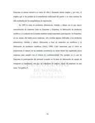 Guaymas es menos intensiva en mano de obra y demanda menos empleo y por otro, el empleo que se ha perdido en la manufactura tradicional del puerto y en otros sectores ha sido sustituido por las maquiladoras de exportación. En 1989 la rama de productos alimenticios, bebidas y tabaco era la que mayor concentración de empresas tenía en Guaymas y Empalme, la fabricación de productos metálicos y la industria de la madera también tenían importante participación. En Empalme, en ese mismo año había pocas empresas; sólo existían algunas dedicadas a los productos alimenticios, bebidas y tabaco, fabricación a base de minerales no metálicos y la fabricación de productos metálicos (INEGI, 1989). Cabe mencionar que el INEGI no proporciona el número de las unidades económicas en ramas donde hay registradas pocas empresas para cumplir con el criterio de confidencialidad. Por ejemplo en el caso de Guaymas la participación del personal ocupado en la rama de fabricación de equipo de transporte es importante, sólo que no conocemos el número exacto de empresas en esta rama. Ver gráfica 8. 73