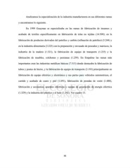 Analizamos la especialización de la industria manufacturera en sus diferentes ramas y encontramos lo siguiente. En 1999 Guaymas se especializaba en las ramas de fabricación de insumos y acabado de textiles específicamente en fabricación de telas no tejidas (14.509); en la fabricación de productos derivados del petróleo y carbón (refinación de petróleo) (5.244) y en la industria alimentaria (3.225) con la preparación y envasado de pescados y mariscos, la industria de la madera (1.321), la fabricación de equipo de transporte (1.225) y la fabricación de muebles, colchones y persianas (1.259). En Empalme las ramas más importantes eran las industrias metálicas básicas (7.515) donde destacaba la fabricación de tubos y postes de hierro, y la fabricación de equipo de transporte (3.193) principalmente en fabricación de equipo eléctrico y electrónico y sus partes para vehículos automotrices, el curtido y acabado de cuero y piel (1.691), fabricación de prendas de vestir (1.488), fabricación y accesorios, aparatos eléctricos y equipo de generación de energía eléctrica (1.329) y la industria del plástico y el hule (1.242). Ver cuadro 13. 95