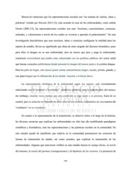 Moscovici menciona que las representaciones sociales son “un sistema de valores, ideas y prácticas” (citado por Duveen 2012:12); más acotado al caso de las enfermedades, como señala Osorio (2001:15), las representaciones sociales son esas “nociones, conocimientos, creencias, actitudes, y valoraciones a través de los cuales se vivencia y aprende el padecimiento”. En esta investigación descubrimos que esas nociones, ideas o creencias configuran la realidad para los sujetos de estudio, llevan un significado que dista de estar cargado del discurso biomédico, pues para ellos el dengue no es una enfermedad, sino un mosco que pica y pega la enfermedad, constructo sociocultural que podría estar relacionado con las políticas públicas del sector salud que lanzan campañas publicitarias donde presenta la imagen del mosco junto a la palabra dengue. Para los jefes de hogar, este mosco posee ciertas características (negro, rayado, peludo, grande, y con patas largas) que lo diferencian de los demás insectos y lo hacen único. La representación etiológica de la enfermedad según los sujetos, está estrechamente relacionada con la suciedad o “cochinero”, condición propicia, para la reproducción del mosco; sin embargo, muchas veces sienten que esta condición es algo ajeno a su persona, fuera de su control, pues la solución no depende de ellos, sino de sus vecinos, culpándolos de esta manera del “cochinero” en su vecindario. En cuanto a la representación de la transmisión, se observó cómo a lo largo de la historia, las diversas creencias que explican las enfermedades no sólo han ido modificando paradigmas científicos y biomédicos, sino las representaciones y las prácticas sociales en la comunidad. En este estudio quedó de manifiesto que todavía en la comunidad permanecen las creencias de formas de transmisión de antaño, así como actuales, que explican la transmisión de las enfermedades. Algunas que estuvieron visibles en este estudio fueron el castigo divino, la teoría del miasma, la teoría del germen (contagionismo) y la hipótesis de los vectores. La presencia de 124