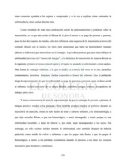 estas creencias ayudaba a los sujetos a comprender y a la vez a explicar cómo entienden la enfermedad y cómo actúan durante ésta. Como resultado de toda esta construcción social de representaciones y prácticas sobre la transmisión, se ve que aún existe el dilema de si pica el mosco o se pega de persona a persona, pues de los diez sujetos de estudio, sólo tres refirieron estar seguros de la transmisión a través del contacto directo con el mosco; los otros siete mencionan que hubo un intermediario humano (directo o indirecto) que interviniera en el contagio. Aquí subrayaremos que para estos últimos la enfermedad proviene del “mosco del dengue”, y la dinámica de transmisión de manera directa es la siguiente: primero el mosco pica al sujeto y el sujeto va pasando la enfermedad a otros sujetos. Otra forma de contagio indirecta, a la que se aludió, es a través del virus en el aire, utensilios contaminados, desechos humanos, fluidos corporales o humor del enfermo. Que la población tenga la representación de que la enfermedad se pega de persona a persona causa rechazo social al enfermo, incluso por parte de su propia familia, parientes, amigos, vecinos, compañeros de trabajo, entre otros. Y como consecuencia de tener la representación de que se contagia de persona a persona, el dengue produce miedos a las personas. Pero también produce miedos al enfermo durante su trayectoria de atención, miedo al solo hecho de estar y saberse enfermo, a la sintomatología, a que deje secuelas físicas, a que sea hemorrágico, a morir desangrado, a morir porque es una enfermedad incurable, a dejar de laborar y, por ende, dejar desamparados a los suyos. Sin embargo, no sólo existen miedos durante la enfermedad, sino también después de haberla padecido, como miedo de volver a enfermar, a que les pegue más fuerte, a que les pegue el hemorrágico, a morir, a las pérdidas económicas durante el proceso, a no tener los recursos necesarios para atenderse y medicarse. 125