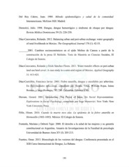 Del Rey Calero, Juan. 1989. Método epidemiológico y salud de la comunidad. Interamericana. McGraw Hill: Madrid. Demorizi, Julio. 1998. Dengue, dengue hemorrágico y síndrome de choque por dengue. Revista Médica Dominicana 59 (3): 226-230. Díaz-Caravantes, Rolando. 2012. Balancing urban and peri-urban exchange: water geography of rural livelihoods in Mexico. The Geographical Journal 178 (1): 42-53. _______2001. Cambios socioeconómicos en el ejido Molino de Camou a partir de la construcción de la presa El Molinito. Tesis de Maestría en Ciencias Sociales, El Colegio de Sonora. Díaz-Caravantes, Rolando y Erick Sánchez Flores. 2011. Water transfer effects on peri-urban land use/land cover: A case study in a semi-arid region of Mexico. Applied Geography 31: 413-425. Díaz-Castrillón, Francisco Javier. 2003. Fiebre amarilla, dengue y encefalitis por arbovirus. En Enfermedades infecciosas, compilado por Hernán Vélez, William Rojas, Jaime Borrero, y Jorge Restrepo, 787-788. Colombia: Editorial CIB. Duveen, Gerard. 2001. Introduction: The Power of Ideas. En Social Representations. Explorations in Social Psychology, compilado por Sege Moscovici. New York: New York University Press. Félix, Hiram. 2010. Cuando la muerte tuvo alas. La epidemia de la fiebre amarilla en Hermosillo (1883-1885). México: El Colegio de Sonora. Fontenla, Mariana y Deborá Tajer. 2008. El derecho a la salud de las mujeres y su garantía constitucional en Argentina. Anuario de Investigaciones de la Facultad de psicología Universidad de Buenos Aires XV (I): 205-213. Fuentes, Omar. 2013. Bioecología de los vectores del dengue. Conferencia presentada en el XIII Curso Internacional de Dengue, La Habana. 135