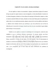 III. Capítulo III. Área de estudio y abordaje metodológico En este capítulo se realiza un acercamiento a algunas características propias del contexto del que son parte los sujetos insertos en esta investigación; se inicia describiendo el contexto de la colonia Insurgentes, ubicada en el área urbana del municipio de Hermosillo; después se relata el contexto actual del Molino de Camou, ubicado en el área rural. Buena parte de la población de ambos sitios vive en condiciones precarias, algunos carecen de los servicios públicos más básicos y además existen múltiples factores que contribuyen a que estas poblaciones sean un foco de infección para la transmisión de dengue; situación que hace de estas comunidades lugares ideales para investigar el tema propuesto. También en este capítulo se muestra la metodología de la investigación, estudio de corte cualitativo en que se utilizaron diferentes instrumentos. Se presenta además, una breve descripción de los participantes insertos en este estudio, donde se detallan las características físicas, económicas y sociales de cada sujeto, el rol del afectado, el tipo de padecimiento de acuerdo a la clasificación del dengue en México, así como algunas complicaciones que existieron durante la enfermedad; todo esto con el fin de asegurar una aproximación más comprensiva del caso, y por consiguiente, que el lector tenga una mayor información del problema de investigación. 37