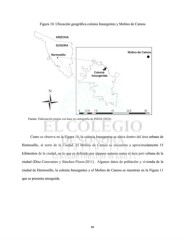 Figura 10. Ubicación geográfica colonia Insurgentes y Molino de Camou Fuente: Elaboración propia con base en cartografía de INEGI (2010). Como se observa en la Figura 10, la colonia Insurgentes se ubica dentro del área urbana de Hermosillo, al norte de la Ciudad. El Molino de Camou se encuentra a aproximadamente 15 kilómetros de la ciudad, en lo que es definido por algunos autores como el área peri-urbana de la ciudad (Díaz-Caravantes y Sánchez-Flores:2011). Algunos datos de población y vivienda de la ciudad de Hermosillo, la colonia Insurgentes y el Molino de Camou se muestran en la Figura 11 que se presenta enseguida. 40