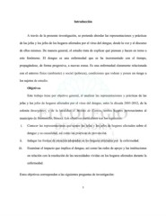 Introducción A través de la presente investigación, se pretende abordar las representaciones y prácticas de las jefas y los jefes de los hogares afectados por el virus del dengue, desde la voz y el discurso de ellos mismos. De manera general, el estudio trata de explicar qué piensan y hacen en torno a este fenómeno. El dengue es una enfermedad que se ha incrementado con el tiempo, propagándose, de forma progresiva, a nuevas zonas. Es una enfermedad claramente relacionada con el entorno físico (ambiente) y social (pobreza), condiciones que rodean y ponen en riesgo a los sujetos de estudio. Objetivos Este trabajo tiene por objetivo general, el analizar las representaciones y prácticas de las jefas y los jefes de hogares afectados por el virus del dengue, entre la década 2003-2012, de la colonia Insurgentes, y de la localidad el Molino de Camou, ambos lugares pertenecientes al municipio de Hermosillo, Sonora. Los objetivos particulares son los siguientes: i. Conocer las representaciones que tienen las jefas y los jefes de hogares afectados sobre el dengue y su causalidad, así como las prácticas de prevención. ii. Indagar las formas de atención adoptadas en los hogares afectados por la enfermedad. iii. Examinar el impacto que implica el dengue, así como las redes de apoyo y las instituciones en relación con la resolución de las necesidades vividas en los hogares afectados durante la enfermedad. Estos objetivos corresponden a las siguientes preguntas de investigación: 1