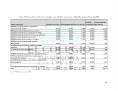 Cuadro 37. Comparación de variables de las principales ramas industriales con una mayor productividad del agua en Hermosillo, 2009 Personal Productividad del Ramas industriales Establecimientos(%) Valor agregado (%) Gasto en agua (%) ocupado (%) agua (Pesos) 3256 Fabricación de jabones, limpiadores y reparaciones de tocador 0.31% 1.73% 0.08% 2.29% 13,662 3361 Fabricación de automóviles y camiones 0.05% 39.15% 2.62% 10.05% 9,152 3272 Fabricación de vidrio y productos de vidrio 0.18% 0.21% 0.04% 0.19% 3,493 3379 Fabricación de colchones persianas y cortineros 3.76% 0.01% 0.00% 0.04% 2,835 3262 Fabricación de productos de hule 0.05% 0.03% 0.01% 0.07% 2,298 3362 Fabricación de carrocerías y remolques 0.03% 0.10% 0.03% 0.28% 1,920 3363 Fabricación de partes para vehículos automotores 0.39% 8.99% 4.09% 12.23% 1,347 3324 Fabricación de calderas, tanques y envases metálicos 0.10% 0.46% 0.21% 0.39% 1,325 3119 Otras industrias alimentarias 0.93% 2.38% 1.12% 1.41% 1,306 3341 Fabricación de computadoras y equipo periférico 0.08% 0.69% 0.34% 0.87% 1,263 3333 Fabricación de maquinaria y equipo para el comercio y los servicios 0.05% 0.04% 0.02% 0.14% 1,227 3112 Molienda de granos y de semillas y obtención de aceites y grasas 0.29% 0.85% 0.43% 0.64% 1,217 3273 Fabricación de cemento y productos de concreto 1.22% 9.23% 4.78% 2.84% 1,182 Total 100% 100% 100% 100% 602.11 Fuente: INEGI, Censos económicos, 2009. 102