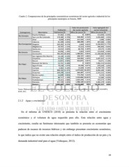 Cuadro 2. Comparaciones de las principales características económicas del sector agrícola e industrial de los principales municipios en Sonora, 2009 Valor de producción Valor agregado del Población del sector agrícola sector industrial Subregiones Municipios Habitantes % Miles de pesos % Miles de pesos % Puerto Peñasco 57,342 2.15% 0 0.00% 111,933 0.21% Rio Sonoyta San Luis Río Colorado 178,380 6.70% 948,582 6.76% 1,020,900 1.92% Altar 9,049 0.34% 213,320 1.52% 1,990 0.00% Caborca 81,309 3.05% 208,498 1.49% 687,696 1.29% Rio Concepcion Nogales 220,292 8.27% 2,859 0.02% 6,266,855 11.77% Magdalena 29,707 1.12% 75,514 0.54% 490,495 0.92% Santa ana 16,014 0.60% 68,793 0.49% 125175 0.24% Cananea 32,936 1.24% 5,854 0.04% 213,918 0.40% Rio Sonora Hermosillo 784,342 29.46% 1,388,961 9.90% 21,299,094 39.99% San Ingnacio Rio Muerto 14,136 0.53% 698,797 4.98% 2,822 0.01% Empalme 54,131 2.03% 320,902 2.29% 3,287,337 6.17% Bacum 22,821 0.86% 954,876 6.81% 54,071 0.10% Nacozari de Garcia 12,751 0.48% 0 0.00% 7,483,713 14.05% Rio Yaqui Agua Prieta 79,138 2.97% 10,106 0.07% 879,344 1.65% Cumpas 6,362 0.24% 14,438 0.10% 1,248,720 2.34% Cajeme 409,310 15.37% 2,579,035 18.38% 4,995,200 9.38% Guaymas 149,299 5.61% 604,487 4.31% 2,153,115 4.04% Benito Juarez 22,009 0.83% 774,783 5.52% 9,176 0.02% Etchojoa 60,717 2.28% 1,518,006 10.82% 12,560 0.02% Rio Mayo Huatabampo 79,313 2.98% 1,025,438 7.31% 153,271 0.29% Navojoa 157,729 5.92% 1,908,109 13.60% 2,482,179 4.66% Sonora 2,662,480 100% 14,030,880 100% 53,265,223 100% Fuente: Elaboración propia con información de INEGI, censos económicos 2009, censos de población y vivienda 2010, SAGARPA, SIAP, 2012. 2.1.2 Agua y crecimiento En el informe de UNESCO (2010) se presenta la relación entre el crecimiento económico y el volumen de agua requerido para ello. Esta relación entre agua y crecimiento, resulta un fenómeno interesante que también se presenta en economías que padecen de escasez de recursos hídricos y sin embargo presentan crecimiento económico, lo que indica que no existe una relación simple entre el índice de producción de un país y la demanda industrial total para el agua (Velázquez, 2012). 19