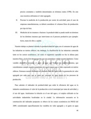 precios constantes o también denominados en términos reales (VPR). En este caso nosotros utilizamos el valor agregado. II. Precisar la medición de la producción por sector de actividad: para el caso de empresas manufactureras, se deberá considerar el volumen físico de producción por tipo de bien. III. Medición de los insumos o factores: la productividad se puede medir en términos de los distintos insumos que intervienen en el proceso productivo por ejemplo: tierra, mano de obra y capital. Nuestro trabajo se planteó calcular la productividad del agua con el consumo de agua de las industrias en metros cúbicos; sin embargo, la clasificación de las industrias contenida tanto en los censos económicos, así como el organismo operador no fue la idónea para nuestros fines, al nivel de desagregación que nos permitiera validar nuestra hipótesis. Como variable alternativa tomamos el gasto en agua que realizan los establecimientos, que consideramos cumple nuestros propósitos de igual manera que el dato expresado en metros cúbicos. Entonces nuestro indicador de productividad del agua mide la generación de valor agregado por cada peso que se gasta por concepto de agua dentro de los procesos de producción. Para calcular el indicador de productividad que mide la eficiencia del agua en la industria consideramos el valor de la producción a nivel municipal por rama de actividad, y el uso del agua. Analizamos la relación en el uso del agua y el empleo utilizado en las actividades industriales localizadas en la ciudad. La información necesaria en la construcción del indicador propuesto se obtuvo de los censos económicos de INEGI del 2009, considerando específicamente las variables de valor agregado y el gasto en agua 46