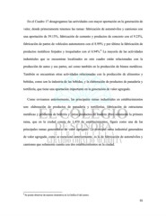 En el Cuadro 17 desagregamos las actividades con mayor aportación en la generación de valor, donde primeramente tenemos las ramas: fabricación de automóviles y camiones con una aportación de 39.15%, fabricación de cemento y productos de concreto con el 9.23%, fabricación de partes de vehículos automotores con el 8.99% y por último la fabricación de 8 productos metálicos forjados y troquelados con el 6.94%. La mayoría de las actividades industriales que se encuentran localizados en este cuadro están relacionadas con la producción de autos y sus partes, así como también en la producción de bienes metálicos. También se encuentran otras actividades relacionadas con la producción de alimentos y bebidas, como son la industria de las bebidas, y la elaboración de productos de panadería y tortillería, que tiene una aportación importante en la generación de valor agregado. Como revisamos anteriormente, las principales ramas industriales en establecimientos son: elaboración de productos de panadería y tortillerías, fabricación de estructuras metálicas y productos de herrería y otros productos de madera. Pero solamente la primera rama, que en la ciudad consta de 1,459 de establecimientos, figura como una de las principales ramas generadoras de valor agregado. La principal rama industrial generadora de valor agregado, como se mencionó anteriormente, es la de fabricación de automóviles y camiones que solamente cuenta con dos establecimientos en la ciudad. 8 Se puede observar de manera ilustrativa en la Gráfica 8 del anexo. 55