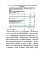 Cuadro 21. Gasto por agua de las actividades industriales por divisiones industriales manufactureras en Hermosillo, 2009 Divisiones de la industria Manufacturera Miles de pesos % División I: Productos alimenticios, bebidas y 17,135 52% tabaco División II: Textiles , prendas de vestir e industria 953 3% del cuero y del calzado División III: Industrias y productos de madera 478 1% División IV: Papel, productos de papel, imprenta 629 2% y editoriales División V: Sustancias químicas, derivados del 5,166 16% petróleo y el carbón División VI: Industria de minerales no metálicos, 129 0% excepto derivados del petróleo y carbón División VII: Industrias metálicas básicas 2,454 7% División VIII: Productos metálicos, maquinaria y 5,672 17% equipo División IX: Otras industrias manufactureras 222 1% Total 32,838 100% Fuente: INEGI, Censos económicos, 2009. Analizando el pago en consumo de agua por ramas industriales, como se presenta en el Cuadro 22, encontramos que las principales consumidoras son: la industria de las bebidas con el 25.9% del total, seguida por las industrias de productos de plástico con el 13.6%, las industrias de matanza, empacado y procesamiento de carne de ganado, aves y otros animales comestibles que consume un 10.9% y por último las industrias de elaboración de productos de panaderías y tortillerías con el 5.4%. Como observamos en este mismo cuadro, las actividades industriales que más consumen agua son las de producción de alimentos y bebidas. Desagregando por ramas industriales las primeras están relacionadas con la producción de alimentos, pero también se encuentran otras ramas como la 67