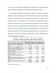 de que son una de las actividades industriales más importantes en el municipio tiene una productividad baja en comparación con las industrias que trabajan con metales. Las actividades de producción de alimentos y bebidas, y la de productos metálicos, maquinaria y equipo, donde la primera actividad industrial tiene un gasto mayor de agua a comparación de la otra actividad, las dos muestran una generación de valor importante (casi aportando el 90% a nivel municipal). En los resultados de productividad del agua se esperaba que fuera alto por parte de las actividades de producción de bienes metálicos, maquinaria y equipo, a comparación de la otra actividad industrial. Según los resultados podemos sacar una conclusión de cuál sería el tipo de industrias que más beneficia a la ciudad de Hermosillo en el uso del agua, pero también hay que ver la otra parte que es el empleo para encontrar si el uso del agua dependiendo del consumo puede justificar la generación de empleos en la industria. Cuadro 26. Productividad del agua del sector industrial en Hermosillo, 2009 Valor agregado Gasto en agua Productividad Divisiones de la industria Manufacturera (Miles de pesos) (Miles de pesos) del agua(Pesos) División I: Productos alimenticios, bebidas y tabaco 3,963,517 17,135 231.31 División II: Textiles , prendas de vestir e industria del cuero y del calzado 341,805 953 358.66 División III: Industrias y productos de madera 115,874 478 242.41 División IV: Papel, productos de papel, imprenta y editoriales 126,664 629 201.37 División V: Sustancias químicas, derivados del petróleo y el carbón 1,683,786 5,166 325.94 División VI: Industria de minerales no metálicos, excepto derivados del petróleo y carbón 7,978 129 61.84 División VII: Industrias metálicas básicas 2,075,504 2,454 845.76 División VIII: Productos metálicos, maquinaria y equipo 11,404,977 5,672 2,010.75 División IX: Otras industrias manufactureras 51,926 222 233.90 Total 19,772,031 32,838 602.11 Fuente: INEGI, Censos económicos, 2009. 73