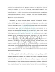importante pero en aportación en valor agregado y empleo no son significativos. En el caso contrario, las industrias que tienen un indicador de productividad alto hallamos ramas industriales que son o no de las importantes en gasto en agua, dependiendo principalmente de la aportación que tengan en el valor y de empleo. Estas ramas industriales utilizan el agua para sus procesos de producción. Consideramos que nuestros resultados podrán comprobar la utilidad de utilizar la productividad del agua como uno de los indicadores más importantes que ayuden a tomar decisiones del tipo de inversión o de industrias que se instalan en la ciudad considerando la disponibilidad de agua. Según los resultados que obtuvimos existen industrias con una generación de valor agregado importante por cada peso que se gasta en agua. Pero un resultado que consideramos importante mencionar es que las ramas que tienen un gasto importante en agua no representa una proporción significativa en los gastos totales (la proporción es menor del 1%). Podemos suponer que pagan poco por el agua, ya sea por la existencia de un subsidio en las tarifas industriales, que estén utilizando aguas de pozos propios o rentando pozos a un tercero. Por los resultados obtenidos, y considerando las condiciones de escasez esta importante generación de valor agregado con el mínimo gasto en agua, nos permite suponer que ciertas industrias podrían tolerar tarifas más elevadas sin afectar la generación de valor. En el último principio de la conferencia de Dublín, se indica que el agua se debe considerar como un bien económico, por el conflicto que existe en el manejo del agua como un bien libre. Se ha considerado esto último como un fracaso ya que en condiciones de escasez puede llevar a menor valor del agua y que se desincentive considerar tratar el agua como un activo limitado. Para extraer el máximo beneficio de los recursos hídricos, es 88