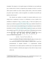 circundante. Otro ejemplo es el de aquellos lugares no fortificados con una muralla pero que se situaban sobre un lomerío, en disposición que asemejaba un torreón. Las casas de adobe expuesto contaban con escasas ventanas, paredes anchas y techos altos sostenidos por gruesas vigas de madera, a modo de resguardar a sus moradores de proyectiles que 7 pudiesen venir del exterior. Otro elemento que constituye un ejemplo de conciencia práctica pero con un enfoque hacia la explotación de recursos es la distribución en torno al pueblo de los sembradíos de temporada. El trigo y el maíz, la caña y el frijol eran regados por las acequias que conducían agua de los ríos cercanos. Ésta es una condición elemental de la vida en este medio natural: la proximidad del agua. En el perímetro del espacio habitable se encontraban las huertas y tierras de labor agrícola, regadas por acequias que desviaban cierta cantidad de agua de río o del cuerpo de agua del que se alimentaban hacia las tierras cultivadas por acción de la gravedad. Como lo describió Carl Lumholtz en su visita al noroeste del estado en el año de 1909: el agua es desviada para la irrigación, además siempre hay agua en la arena, esto es más aparente en la parte del río entre Pitiquito y Caborca, donde el agua fluye permanentemente en pequeñas distancias y es ingeniosamente utilizada extensivamente en los campos agrícolas, recordemos que en esta región una buena lluvia de noviembre es suficiente para asegurar un buen cultivo de trigo en mayo (1990, 145). 7 AGES/FE/Indígenas-Apaches/C333/t10/exp2/f7198/Moctezuma/1-1-1883. AGES/FE/RP/t283/se/sf/Tarachi/12-6-1855 documentos transcritos en https://www.colson.edu.mx:4433/AdminRIA/Administracion.aspx. 17