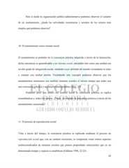 Pero si desde la organización político-administrativa podemos observar el carácter de un asentamiento, ¿desde las actividades económicas y sociales de los actores más simples qué podemos observar? 10. El asentamiento como sistema social El asentamiento es portador de la conciencia práctica adquirida a través de la interacción, dicha conciencia es generalizable a un sistema social, entendido éste como una unidad con un alto grado de integración social, entidades cuyo deslinde del mundo circundante es claro y cuentan con unidad interna. Trasladando este concepto podemos observar que los asentamientos sonorenses son también sistemas sociales al mismo tiempo que sedes con una conciencia práctica y un carácter determinables (ibíd., 27). Podemos decir que dentro del sistema social la conciencia práctica se replica extendiéndose a todos los actores. ¿Cómo se extiende la conciencia práctica a través de los asentamientos sonorenses? 11. El proceso de reproducción social Vista a través del tiempo, la conciencia práctica es replicada mediante el proceso de reproducción social que, con un carácter recurrente, se comprende como ciertos aspectos institucionalizados de sistemas sociales que poseen propiedades estructurales que en un determinado tiempo y espacio se estabilizan (Giddens 1998, 22-25). 37