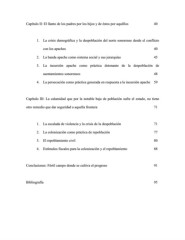 Capítulo II: El llanto de los padres por los hijos y de éstos por aquéllos 40 1. La crisis demográfica y la despoblación del norte sonorense desde el conflicto con los apaches 40 2. La banda apache como sistema social y sus jerarquías 45 3. La incursión apache como práctica detonante de la despoblación de asentamientos sonorenses 48 4. La persecución como práctica generada en respuesta a la incursión apache 59 Capítulo III: La calamidad que por la notable baja de población sufre el estado, no tiene otro remedio que dar seguridad a aquella frontera 71 1. La escalada de violencia y la crisis de la despoblación 71 2. La colonización como práctica de repoblación 77 3. El repoblamiento civil 80 4. Estímulos fiscales para la colonización y el repoblamiento 88 Conclusiones: Fértil campo donde se cultiva el progreso 91 Bibliografía 95