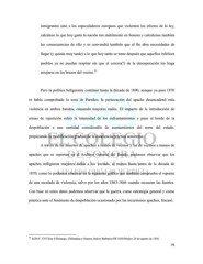 inmigrantes sino a los especuladores europeos que violenten los efectos de la ley, calcúlese lo que hoy gasta la nación tan inútilmente en Sonora y calcúlense también las consecuencias de ello y se convendrá también que al fin abra necesidades de llegar (y quizás muy tarde) a lo que hoy tanto se teme después que aquellos infelices pueblos ya no pueden respirar sin que el cerezo(?) de la desesperación los haga 33 arrojarse en los brazos del vecino. Pero la política beligerante continuó hasta la década de 1890, aunque ya para 1870 se había comprobado la tesis de Paredes: la persecución del apache desencadenó más violencia en ambos bandos, causando mayores males. El impacto de la introducción de armas de repetición subió la intensidad de los enfrentamientos y puso al borde de la despoblación a una cantidad considerable de asentamientos del norte del estado, propiciando la modificación gradual de la conciencia práctica sonorense. A través de las muertes de apaches a manos de vecinos y las de vecinos a manos de apaches que se reportan en el Archivo General del Estado, podemos observar que los apaches infligieron mayores daños a los vecinos, al menos hasta antes de la década de 1870, como lo podemos observar en la siguiente gráfica que también comprueba el repunte de una escalada de violencia, salvo por los años 1863-1866 cuando escasean las fuentes. Con base en estos datos podemos observar que la guerra, como estrategia general y como práctica ante el fenómeno de despoblación ocasionado por las incursiones apaches, fracasó. 33 AGN/C 3767/Exp 5/Durango, Chihuahua y Sonora, Indios Barbaros/SF/1850/Mejico 28 de agosto de 1850. 79