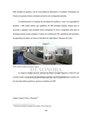 líder mundial en genética, con la Universidad de Minessota y el Instituto Tecnológico de Sonora con quienes realiza constantes proyectos de investigación aplicada. La infraestructura se compone de una planta de sacrificio y corte, con capacidad de producir 1 800 cerdos diarios que significan 45 000 toneladas anuales mismas que se procesan y empacan como producto fresco refrigerado al vacio o congelado, tanto para el mercado nacional como extranjero. Cuenta con certificación TIF, aprobación del ministerio de agricultura de Japón, así como el ministerio de Agricultura y Bosques de Corea. Imagen 9 Fuente: tomada de la página de internet de la empresa La empresa también tiene la certificación México Calidad Suprema y HACCP; por su parte cuenta con un centro de transferencia genética con 410 sementales que cuentan con los más altos índices genéticos, gracias a la alianza con PIC. 37 Grupo Yoreme Cortes y Procesos 37 Información obtenida de la página de la empresa: www.yoreme.com 103