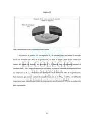 Gráfico 12 Fuente: elaboración propia con base en información recibida en encuesta De acuerdo al gráfico 13, las empresas E y F orientan más sus ventas al mercado local con alrededor del 60% de su producción, es decir la mayor parte de las ventas son dentro del estado de Sonora; las empresas C y D buscan más el mercado nacional al destinar el 60 y 50% respectivamente de sus ventas; en tanto al mercado de exportación son las empresas A, B, C y D quienes más participan con al menos el 30% de su producción. Las empresas que menos cubren el mercado local son la D (9%), C (10%) y B (20%).Es importante hacer mención que todas las empresas envían al menos el 20% de su producción para exportación. 111