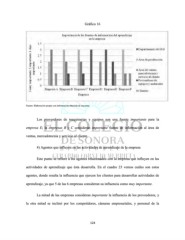 Gráfico 16 Fuente: Elaboración propia con información obtenida de encuesta Los proveedores de maquinarias y equipos son una fuente importante para la empresa E; la empresas B y C consideran importante fuente de información al área de ventas, mercadotecnia y servicio al cliente. 4) Agentes que influyen en las actividades de aprendizaje de la empresa Este punto se refiere a los agentes relacionados con la empresa que influyen en las actividades de aprendizaje que ésta desarrolla. En el cuadro 23 vemos cuáles son estos agentes, donde resalta la influencia que ejercen los clientes para desarrollar actividades de aprendizaje, ya que 5 de las 6 empresas consideran su influencia como muy importante. La mitad de las empresas consideran importante la influencia de los proveedores, y la otra mitad se inclinó por los competidores, cámaras empresariales, y personal de la 124