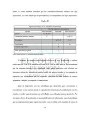 planta. La mitad también considera que los consultores/asistentes externos son algo importantes, y el resto señaló que los proveedores y los competidores son algo importantes. Cuadro 23 Agentes que influyen en las actividades de aprendizaje Nivel de importancia para empresa Agentes Muy importante Importante Algo importante Clientes A, B, D, E y F Consultores/ asistentes externos C A, D y E Proveedores A, D y E C y F Competidores F B Cámaras empresariales B Otros: personal de la planta C Fuente: Elaboración propia con información obtenida de encuesta El apartado tres proporciona elementos claves en la tarea de entender y explicar mejor parte del éxito de la industria porcícola local. Aquí se pudo apreciar las herramientas que las empresas brindan a sus empleados como apoyo para hacer más eficiente sus funciones; utilizar los instructivos para las tareas, los apoyos visuales, y los manuales de operación son herramientas que las empresas consideran les han ayudado de manera importante a adquirir y compartir el conocimiento. Igual de importante son las actividades que desarrollan para incrementar el conocimiento en su empresa donde la capacitación del personal, la colaboración con los clientes, y recibir asesoría externa son actividades muy utilizadas para ese propósito. Por otra parte, el área de producción es la principal fuente de información para el aprendizaje que las empresas tienen para seguir innovando, y eso se refleja en la cantidad de cursos de 125