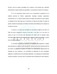 diversas, como las mismas necesidades de la empresa o del mercado pero, realizarlas eficientemente, requiere también de capacidades y conocimientos al interior de la empresa. Ya se ha mencionado mucho acerca de las características competitivas de la industria porcícola de Sonora: organización, tecnología avanzada, capacitación, certificaciones, etc. Lo anterior facilita realizar actividades innovadoras de mayor impacto, en cualquiera de los cuatro tipos que se mencionan a lo largo de este trabajo. El cuadro 28 permite visualizar las principales actividades innovadoras desarrolladas por las empresas en los últimos tres años. La empresa A es quién más actividades de innovación ha ligado de tres años a la fecha con nueve; enseguida la empresa D con ocho; F con siete y la E con cinco. La empresa B que es de las dos más importantes del estado, sólo ha realizado cuatro actividades todas orientadas a la adquisición de maquinaria, equipos, tecnologías y realizar nuevos diseños y productos. La actividad innovadora más realizada es la adquisición de maquinarias y equipos que repercutieron en mejoras o nuevos productos / procesos que fue una alternativa para las seis firmas; los programas de gestión de calidad o de modernización organizacional fue realizada por cinco empresas y; las actividades de adquisición de otras tecnologías, adaptación y modificación de las tecnologías adquiridas y, los programas de entrenamiento asociado a productos / procesos nuevos o mejorados fueron realizados por cuatro empresas. 133