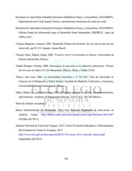Secretaria de Agricultura Ganadería Recursos Hidráulicos Pesca y Acuacultura, SAGARHPA, Departamento del Cerdo Seguro Sonora, exportaciones sonorenses de carne de cerdo. Secretaria de Agricultura Ganadería Recursos Hidráulicos Pesca y Acuacultura, SAGARHPA, Oficina Estatal de Información para el Desarrollo Rural Sustentable, OEIDRUS, datos de 1990 al 2011. Vázquez Barquero, Antonio, 2005. Desarrollo Urbano del territorio. En Las nuevas fuerzas del desarrollo. pp 95-115, España: Antoni Bosch Vázquez Ruiz, Miguel Ángel, 2009. Frontera Norte la Economía en Sonora. Universidad de Sonora, Hermosillo, México. Taddei Bringas, Cristina, 2008. Estrategias de mercado en la industria alimentaria. Plantas del noroeste de México.P-141.Hermosillo, México. Plaza y Valdés CIAD Tinoco, Jose Luis, 2004. La porcicultura mexicana y el TLCAN. Tesis de doctorado en Ciencias de la Producción y Salud Animal. Facultad de Medicina Veterinario y Zootecnia, Universidad Nacional Autónoma de México. Zahra, Shaker A. y Gerard George, 2002.Absorptive capacity: a review, reconceptualization, and extension. Academy of Management Review, Vol 27 N,2: 185-203.México. Sitios de internet consultados: Banco Interamericano de Desarrollo, 2011. Los Sistemas Regionales de Innovación en América Latina. http://idbdocs.iadb.org/wsdocs/getdocument.aspx?docnum=36413687 (Octubre del 2013). Instituto Nacional de Carnes de Uruguay, 2013. Cierre Evolución Indicadores y Determinantes del Consumo de Carnes en Uruguay, 2013. http://www.inac.gub.uy/innovaportal/file/8174/1/cierre_2012_mercado_interno.pdf (Septiembre del 2013). 159