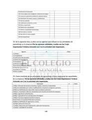 9) Instituciones de Educación 10) Centros públicos de investigación y desarrollo tecnológico 11) Centros de capacitación profesional y asistencia técnica 12) Instituciones de pruebas, ensayos y certificaciones 13) Licencias, patentes 14) Conferencias, seminarios y cursos 15) Ferias y exposiciones 16) Publicaciones especializadas 17) Cámaras y asociaciones empresariales 18) Información en Internet 19) Adquisición de nuevos equipos 20) Otras (especifique) 24. De la siguiente lista, ¿cuáles son los agentes que influyen en las actividades de aprendizaje en la empresa?De las opciones señaladas, ¿cuáles son las 3 más importantes? Ordene iniciando con 3 en la actividad más importante. Agentes Si Orden 1) Clientes 2) Competidores 3) Instituciones de educación 4) Centros de investigación 5) Proveedores 6) Cámaras empresariales 7)Consultores/Asesores externos 8) Empresas que no son sus proveedores ni clientes 9) Otros ¿Cuáles? 25. Como resultado de las actividades de aprendizaje ¿Cómo mejoraron las capacidades de su empresa? De las opciones señaladas, ¿cuáles son las 3 más importantes? Ordene iniciando con 3 en la actividad más importante. Descripción Si Orden 1) Mejor utilización de técnicas productivas, equipos, insumos y componentes 2) Mayores habilidades para realizar modificaciones y mejoras en productos y procesos 3) Mejores habilidades para desarrollar nuevos productos y procesos 4) Mayor conocimiento sobre las características de mercados de interés de la empresa 5) Mejor capacitación administrativa 6) Mejor capacidad de toma de decisiones estratégicas 7) Mejor estructura organizacional de la empresa 8) Incremento en la productividad de los procesos 9) Mejores habilidades de negociación y ventas 10) Mejor planeación financiera 11) Mejor preparación para la planeación y ejecución de proyectos 12) Mayor capacidad de vinculación 168