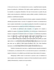 2) Innovación de proceso. Es la introducción de un nuevo, o significativamente mejorado, proceso de producción o distribución. Ello implica cambios significativos en las técnicas, los materiales y/o programas informáticos. Este tipo de innovaciones se pueden dar para reducir costos de producción o distribución, mejorar calidad, o producir o distribuir nuevos productos o sensiblemente mejorados. Los métodos de producción incluyen las técnicas, equipos o programas informáticos utilizados para producir bienes o servicios. Un ejemplo de lo anterior es la introducción de nuevos equipos automatizados en una cadena de producción; desarrollar un programa que ayude en la generación de un diseño que facilite la elaboración de un producto. Los métodos de distribución están vinculados a la logística de la empresa y engloban los equipos, los programas informáticos y las técnicas para el abastecimiento de insumos, la asignación de suministros dentro de la empresa o la distribución de productos finales. Por ejemplo, lo que realizan las grandes tiendas minoritas como Walt-Mart de tener un sistema digital perfectamente coordinado con los proveedores, hace posible que cuando algún artículo es vendido en la tienda, esa información llega inmediatamente al proveedor para saber que ese artículo se debe reponer (Friedman, 2010: 139). Poder identificar mercancías a través de códigos de barras es otro ejemplo de innovación de proceso. También la introducción de una nueva, o significativamente mejorada tecnología de la información y la comunicación (TIC) es una innovación de proceso si está destinada a mejorar la eficiencia y/o la calidad de una actividad de apoyo básica dentro de la empresa. Alburquerque (2004) resume la innovación en procesos como la instalación de nuevos equipos, nuevas instalaciones o mejoras en la línea de producción actual, control de calidad, informatización, o relación con los proveedores. 30