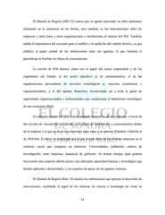 El Manual de Bogotá (2001:32) marca que el agente innovador no debe analizarse solamente en la estructura de las firmas, sino también en las interrelaciones entre las empresas y entre éstas y otras organizaciones e instituciones al interior del SNI. También señala la importancia del concepto para el análisis y la medición del cambio técnico, ya que enfatiza el papel central de las interacciones entre los agentes, lo que fomenta el aprendizaje al facilitar los flujos de conocimiento. La noción de SNI destaca, junto con el papel del sector empresarial y de los organismos del Estado, el del sector educativo (y de entrenamiento), el de las organizaciones proveedoras de servicios tecnológicos (y asesorías económicas y organizacionales), y el del aparato financiero, involucrando así a toda la gama de capacidades organizacionales e institucionales que condicionan el dinamismo tecnológico de una economía (Ibid). Un objetivo central del SNI es el desempeño innovativo de las empresas, a través de dos niveles de vinculación: el referido a los flujos de información y conocimientos dentro de la empresa y el que se da en las relaciones entre éstas y su entorno (Dutrénit, Gabriela et al, 2010:64). Es decir, es propiciado por lo que sucede fuera de las mismas empresas en el contexto social que compone un territorio: Universidades, población, centros de investigación, otras empresas, instancias de gobierno. Al mismo tiempo, para generar innovación una empresa deberá poseer una adecuada capacidad humana y tecnológica que facilite aplicarla y desarrollarla, y eso requiere de apoyo de los agentes externos. El Manual de Bogotá (Ibid: 24) analiza las instituciones que apoyan el desarrollo de innovaciones, resaltando el papel de los sistemas de ciencia y tecnología así como su 37