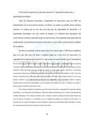 6 3) El rol de la empresa en el proceso innovativo: capacidad de absorción y aprendizaje tecnológico Tanto los Sistemas Nacionales y Regionales de Innovación como las RGP son determinantes de la innovación externos a la firma; en cambio es posible ubicar factores internos a la misma que no son otra cosa más que las capacidades de absorción y el aprendizaje tecnológico con que cuenta la empresa y/o industria para apropiarse del conocimiento existente expresado luego en innovaciones. Este apartado trata justamente de problematizar esa dimensión del proceso innovativo: el que atañe exclusivamente al ámbito de la empresa. En efecto al analizar la firma como actor de la innovación, el MO busca establecer qué es lo que hace que una firma o empresa tenga tal o cual nivel de innovación. La capacidad de la empresa para reconocer y aprovechar las oportunidades que el mercado les 6 En los modelos que el MO desarrolla para explicar la innovación, la empresa juega un papel importante en su concepción y aplicación, pero al mismo tiempo para lograrlo, se necesita un conocimiento multidisciplinario que requiere procesos interactivos donde intervengan una gran variedad de actores, los cuales deben adquirir, desarrollar e intercambiar conocimientos adecuados para conducir acertadamente la producción de innovaciones (Caballero H, 2010: 346). Esos actores lo constituyen tanto los factores internos (la propia empresa y el entorno regional o nacional que se vive) a los que hacemos referencia en las primeras dos secciones de este subapartado, como los factores externos (empresas multinacionales y formación de redes globales con esas empresas o que trabajan para otras no instaladas en esa región o país) a los que nos referimos en la tercera sección. Antes existieron modelos que planteaban que la innovación sólo podía ser emprendida por las grandes empresas monopólicas en sus laboratorios de investigación y desarrollo, debido principalmente, por lo costosa e impredecible que resultaba (Schumpeter, 1943, citado por Caballero, opcit). Después se empezó a analizar la tecnología desde ámbitos que iban más allá de las empresas y los individuos, como los impulsos tecnológicos por empresas de otros países y la extracción de esas ventajas tecnológicas por parte de empresas o países menos desarrollados (Ibid), hasta llegar a la visión más integracionista desde donde se analiza hoy en día la innovación. 46