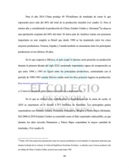 Para el año 2010 China produjo 49 591millones de toneladas de carne lo que representó poco más del 46% del total de la producción mundial (ver cuadro 3). Para el 10 mismo año y considerando la producción de China, Estados Unidos y Alemania se observa una aportación conjunta del 60% del total. El único país de América Latina con presencia importante en este renglón es Brasil que desde 1990 se ha mantenido entre los cinco mayores productores. Francia, España y Canadá también se encuentran entre los principales productores en los últimos 20 años. En lo que respecta a México, el país ocupó la decimo sexta posición en producción durante la primera década del siglo XXI, mostrando importantes signos de recuperación ya que entre 1990 y 1995 no figuró entre los principales productores, contrastando con el periodo de 1980-1985 cuando México estaba entre los diez primeros lugares en producción. (http://faostat.fao.org/site/339/default.aspx) c) Comercio mundial: principales exportadores e importadores En lo que se refiere a las exportaciones e importaciones de la carne de cerdo, al 2010 se exportaron en el mundo 4 873 millones de toneladas. Los principales países exportadores son Estados Unidos, Alemania, Dinamarca, Bélgica y Países Bajos (Holanda). Del 2000 al 2010 Estados Unidos se consolidó como el líder exportador indiscutible, ya que durante los años noventa Dinamarca y Países Bajos exportaban la mayor cantidad de toneladas. (Ver cuadro 4) 10 Desde 1995 estos países han permanecido como los mayores productores a nivel mundial. Es importante mencionar que durante la década de los ochenta, la Unión de Repúblicas Socialistas Soviéticas se ubicaba como el tercer productor solo por debajo de China y Estados Unidos, posición que ocupo hasta 1990. 58
