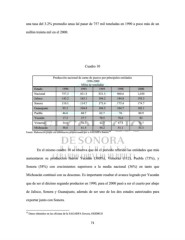 una tasa del 3.2% promedio anua lal pasar de 757 mil toneladas en 1990 a poco más de un millón treinta mil en el 2000. Cuadro 10 Producción nacional de carne de puerco por principales entidades 1990-2000 Miles de toneladas Estado 1990 1993 1995 1998 2000 Nacional 757.3 821.5 921.5 960.6 1,030 Jalisco 143.2 163.1 184.2 184.8 193.3 Sonora 110.1 114.7 173.4 175.4 174.7 Guanajuato 95.3 104.8 104.5 104.7 102.1 Puebla 46.6 60.7 62.7 76 80.9 Yucatán 17.2 27.7 70.5 76.6 83 Veracruz 34.6 36.3 42.7 47.3 73.7 Michoacán 58.6 61.5 54.2 51.1 53.3 14 Fuente: Elaboración propia con información proporcionada por la SAGARPA Sonora. En el mismo cuadro 10 se observa que en el periodo referido las entidades que más aumentaron su producción fueron Yucatán (380%), Veracruz (112), Puebla (73%), y Sonora (58%) con crecimientos superiores a la media nacional (36%) en tanto que Michoacán continuó con su descenso. Es importante resaltar el avance logrado por Yucatán que de ser el décimo segundo productor en 1990, para el 2000 pasó a ser el cuarto por abajo de Jalisco, Sonora y Guanajuato, además de ser uno de los dos estados autorizados para exportar junto con Sonora. 14 Datos obtenidos en las oficinas de la SAGARPA Sonora, OEIDRUS 71