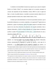 La industria se ha desarrollado de manera muy especial ya que a pesar de compartir 21 frontera con Estados Unidos, y de encontrase alejada de los mercados nacionales de consumo más importantes del país (Hernández, Carmen, 2000:111) como la región del bajío y el centro, ha podido destacar y consolidar su presencia nacional, además de ser el principal exportador enviando cortes a Japón, Estados Unidos y Corea. Un factor que ha sido determinante en el éxito de la porcicultura sonorense y que le 22 ha permitido sobreponerse a un contexto complicado, es la organización lograda entre sus productores y grupos de productores, quienes han podido integrara la actividad al menos cuatro de los cinco fases del proceso de producción: cría; engorda controlada en base a alimentos balanceados y mezcla de forraje elaborado por su propia planta de alimentos; sacrificio en planta TIF, procesamiento en sala de corte; y comercialización de carne y subproducto (Taddei, 2008: 141). La integración vertical desarrollada ha sido clave en el éxito y competitividad de la industria. Las empresas cuentan con sus propias fábricas de alimentos balanceados, sistemas automatizados de formulación de raciones de acuerdo a cada etapa de la producción y a la calidad genética de los animales e inclusive de acuerdo a la 20 Esta situación también contribuye a impulsar la producción de estos cultivos agrícolas; que por otra parte representa una de las fortalezas de la porcicultura sonorense ya que no hay necesidad de importarlos o buscarlos en otras entidades. Para mayor información, consúltese la página de internet DE SAGARPA, 1998 que aparece en la bibliografía. 21 Estados Unidos era al 2010 el segundo mayor productor de carne de cerdo y el principal exportador mundial a quién México le compra más del 80% de la carne importada (www.faostat.com, Tinoco, José, 2002) 22 Esta organización se ha dado principalmente de dos maneras: la primera es creación de la Unión Ganadera Regional de Porcicultores de Sonora (UGRPS) en 1985, constituida por cuatro asociaciones locales; la otra corresponde a los grupos agroindustriales conformados como sociedades accionarias por los productores, que son empresas privadas con un gran despliegue en la producción e industria del puerco en el estado. 77