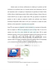 Además cuenta con diversas certificaciones de calidad que le permiten una fácil circulación de sus productos tanto en el mercado nacional como internacional. Entre las más importantes están: la otorgada por el departamento de agricultura de Estados Unidos (USDA); México Calidad Suprema desde el 2006; Análisis de Peligros y Puntos Críticos de Control (HACCP por sus siglas en ingles) desde 1998, que garantiza la inocuidad del producto en todo la cadena de producción; también está certificada como Empresa Socialmente Responsable (ESR) desde el 2012 por su aportación al cuidado del medio ambiente, su ética empresarial y vinculación con la comunidad. 32 Lancer Es una empresa de integración vertical localizada en el municipio de Hermosillo, tiene sus orígenes en 1986 de una separación de socios de Grupo Alpro. Es una de las empresas más chicas de su ramo, formada por cuatro socios desde 1996 de capital totalmente sonorense; cuenta con una capacidad de matanza de 550 cerdos por turno cuyas ventas se destinan al interior del estado, a Chihuahua y la Ciudad de México. También exportan a Japón. De acuerdo a su filosofía, la fuerza de la empresa radica en la flexibilidad y en la voluntad de hacer lo que otros países o compañías generalmente no harían. Imagen 2 Fuente: Tomadas de la página de internet de la empresa 32 La mayor parte de la información se obtuvo de la página de la empresa: www.sonorapork.com 96