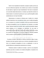 Dentro de las inequidades del desarrollo, escogimos aquella que tiene que ver con las diferencias regionales, tras considerar que el cambio en la fecundidad fue más rápido en regiones de mayor industrialización. Para hacer la comparación con el promedio estatal seleccionamos un municipio cuyo desarrollo económico se hubiera basado en la producción agrícola por lo que su perfil demográfico estaría caracterizados por una mayor fecundidad. Seleccionamos el municipio de Navojoa para el análisis de la relación población desarrollo por dos circunstancias; primero, para el análisis demográfico en sí, se requiere de un volumen de población mínimo que permita instrumentar los cálculos demográficos ya que con poblaciones muy reducidas no es posible 3 hacerlo; además el tamaño del municipio, dado su aparato administrativo asegura menos problemas con el subregistro de nacimientos. Por otra parte, la preeminencia del sector agrícola en la economía municipal y por tanto su retraso en el proceso de modernización, da pie para investigar las relaciones existentes entre la condición rural de la población y la conformación demográfica. El período de estudio (1950-2000) en términos económicos refleja el auge y decadencia del sector agrícola mientras que en términos demográficos abarca el inicio de la aceleración demográfica así como su estabilización, lo cual nos permitirá diferenciar comportamientos reproductivos en el tiempo. Planteamos abordar el análisis del municipio, a partir de una perspectiva económica que entre en contacto con el sistema demográfico, en especial con la 3 Actualmente Navojoa cuneta con alrededor de 150,000 habitantes.
