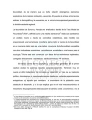 fecundidad, de tal manera que en dicha relación obtengamos elementos explicativos de la relación población - desarrollo. El puente de enlace entre las dos esferas, la demográfica y la económica, es la estructura ocupacional generada por la división sectorial regional. La fecundidad de Sonora y Navojoa es analizada a través de la Tasa Global de 5 4 Fecundidad (TGF), definida como una medida transversal. Dado que planteamos un análisis macro a través de promedios estadísticos, esta medida nos proporcionará una herramienta importante para medir la fuerza de la fecundidad en un momento dado; esto es, una medida coyuntural de la fecundidad compatible con otros indicadores económicos y sociales que se calculan a nivel macro para el 6 municipio. Dicha tasa será construida con datos de los nacimientos registrados, corregidos directamente y ajustados a través del método P/F de Brass. El trabajo consta de tres capítulos y conclusiones generales. En el primer capítulo analizo la polémica relación población-desarrollo. Teniendo muy en cuenta el difícil tratamiento del concepto de desarrollo en vista de su trasfondo político. Abordaremos la mencionada relación desde dos vertientes aparentemente antagónicas: a) aquella que considera el crecimiento de la población como obstáculo al desarrollo, y b) la que explica que en el nivel macroeconómico el mecanismo de pauperización está asociado al cambio social y económico y no al 4 La Tasa Global de Fecundidad es una medida demográfica que indica los hijos nacidos vivos, procreados por las mujeres durante su vida reproductiva en ausencia de mortalidad materna. 5 La medida transversal de la fecundidad, es un estudio de momento, en este caso, las tasas calculadas representan la experiencia vivida por un conjunto de mujeres de diferentes cohortes al pasar por un periodo determinado. A diferencia de la medida longitudinal, que representa la experiencia de una cohorte de mujeres durante el periodo fértil (35 años). Esto implica que en la actualidad se tendrán valores referidos a cohortes de mujeres que entraron hace 35 años a su periodo fértil, lo que puede ser significativamente distinto al nivel de la fecundidad actual. 6 Welti Carlos. Editor. Demografía II. PROLAP. CELADE, The John D. And Catherine T. MacArtur Foundation. IIS-UNAM. Santiago de Chile, 1998. Pág. 48.