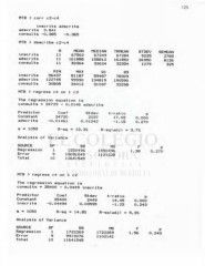 25 MTB > corr c2-c4 inscrita adscrita adscrita 0.841 consulte -0.385 -0.365 MTB > describe c2-c4 N MEAN MEDIAN TRMEAN STDEV SEMEAN inscr its 11 67562 67249 67284 9235 2785 adscr ita 11 161888 158812 161852 26950 8126 coneults 11 32364 32624 32354 1079 325 MIN MAX Ql Q3 inscr its 56437 81187 59487 78309 adscr its 122745 99990 134819 190590 consults 30808 34012 31097 33298 MTB > regress c4 on 1 c3 The regresaion equation is consults • 34729 - 0.0146 adscrits Predictor Coef Stdev t-rat io P Constant 34730 2037 17.05 0.000 adscr its -0.01461 0.01242 -1. 18 0.270 s = 1059 R-sq 13.37. R-sq(adJ) • 3.77. Analysis of Variance S0URCE DF SS MS F P Regression 1 1550496 1550496 1.38 0.270 Error 9 10O91O49 1121228 Total 10 11641545 MTB > regress c4 on 1 c2 The regression equation is consults = 35400 - 0.0449 inscrits Predictor Coef Stdev t-ratio P Constant 35400 2449 14.45 0.000 inscr ita -0.04494 0.03595 -1.25 0.243 a • 1050 R-aq • 14.87. R-eq(adj) - 5.37. Analyaia of Variance S0URCE DF SS MS F P Regreaaion 1 1722269 1722269 1.56 0.243 Error 9 9919276 1102142 Total 10 11641545